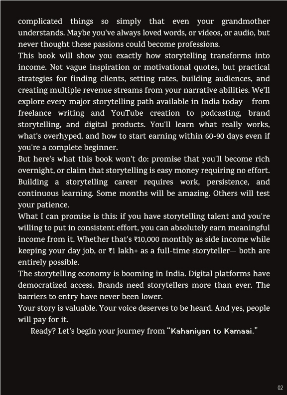 This isn’t motivational fluff. It’s a practical business playbook teaching you to earn from freelance writing, YouTube, podcasting, brand storytelling —even with zero experience.